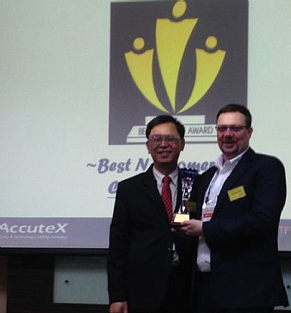 The award for 'best newcomer' was presented to CNC International for its exceptional sales contribution since becoming the UK agent for Accutex in 2013. Presented at the Accutex global dealer meeting during the exhibition, the award recognises the efforts of CNC International to generate higher sales figures than any other new global agent.