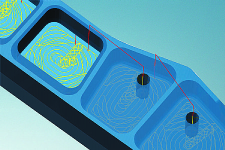 When it comes to Z-level finishing, CAD systems usually simply follow the X and Y coordinates. If the bottom surface is curved, the milling result is not optimal and it is necessary to perform a number of rework machining steps. A new function for 3D shape Z-level finishing makes it possible to reference curved bottom surfaces, after which the milling paths are aligned. As a result, the milling tool nestles optimally along the boundary edge between the bottom and the wall. All intermediate levels are offsets of the bottom plane.