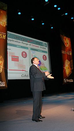 Despite TaeguTec's strategy for global growth in key industry sectors and regions, none of this would be a success without the relentless product innovation. Following Mr Harpaz's insight into the global cutting tool industry and where the IMC Group and TaeguTec fit into the equation, the afternoon presentations revolved around the new TaeguTec Gold Rush line of products. Discussing the evolution of insert tooling, Mr Harpaz identified that PVD and CVD coated tooling are clearly the products with the highest demand. Whilst CVD coated inserts are renowned for their high speed machining capabilities and PVD coatings for their edge toughness, the global cutting tool industry has witnessed a marked change in demand between 2006 and 2011. In 2006, CVD coated inserts accounted for 55% of cutting tool demand with PVD coated products at 20%. By 2011 the roles had reversed with CVD tooling accounting for 25% and PVD inserts increasing to 56%.