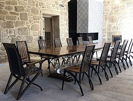 A number of visits to West London to see Inplas and agree the profile shapes confirmed that the seemingly impossible feat of resting 200kg of Walnut on acrylic legs with no fixings was feasible. Sebastian spent nine months hand crafting the wood for the table and chairs while Inplas got straight on the phone to Sally Hunt at ITC.