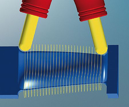 The user interface for special turbine blade milling functions has been improved and simplified. The geometry selection method that was previously used for impellers and blisks is now also available for turbine blades. In hyperMILL® 2014, geometries are selected using a specially designed feature.