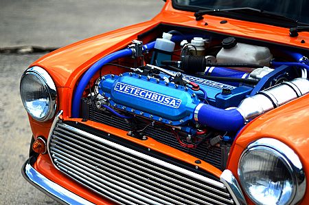 Even the most powerful production Mini variant ever only developed 96bhp, although the vast majority of minis only developed around 65bhp or less. An exceptionally highly tuned model can generate upwards of 120-130bhp, but with very low reliability as a consequence. The Hayabusa engine has a power output of 197bhp as standard and when re-packaged by Vetech, it weighs just 100kg. This is a 32% engine weight reduction over the original unit. For those with an inclination for seemingly jet-propelled speed, Vetech also offers a super-charged 300bhp unit.