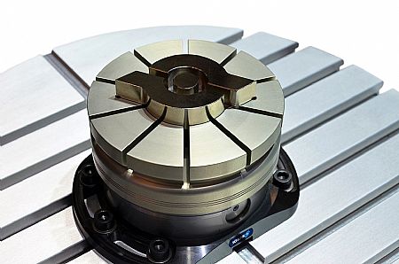 Due to the clamping depth of only a few millimeters, the workpiece is fully accessible from five sides. The fixture membrane can be located on the quick-change pallet module with a repeat accuracy of less than 0.01mm. The use of an additional clamping unit is unnecessary. If required, it can be machined several times, and different workpiece geometry can be used. The clamping unit is suitable for light machining of various materials and workpiece contours for the second set-up. The maximum workpiece diameter amounts to 120mm.