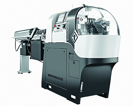 The Swiss Nano was intended to be a resolutely, uncompromising watchmaking machine and its kinematics enable it to produce 75% of the moving parts in a watch. However, in the UK, Tornos envisages this machine making a significant impact in the production of small connectors and the electronic industry. Production for the watchmaking and electronics sector includes anything from simple to complex parts that may require gear hobbing.